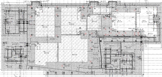 Le fondazioni sono di tipo superficiale: platea spessore costante 600mm e travi di sezione 450x600mm e 3000x600mm; l’estradosso delle fondazioni si attesta a quota -1.950m. Pareti in calcestruzzo armato spessore 300mm e pilastri sezione 750x750mm si elevano fino a quota -0.300m |