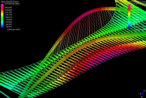 di sollecitazione della struttura in relazione ai tiri reali misurati sugli stralli.
