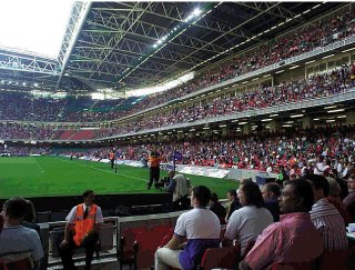 Inaugurato, aprendo il tetto mobile sopra una platea di 75.000 spettatori dal principe Carlo d'Inghilterra il primo giorno di novembre 1999, in occasione della prima partita del campionato mondiale di Rugby (Galles-Argentina), il nuovo stadio copre, senza colonne intermedie, 40.000 mq dei quali circa 10.000 apribili sopra il campo di Rugby (mq 120x80). Lo Studio Romaro, che ha partecipato, su incarico della Cimolai di Pordenone, alla realizzazione dell'opera con la progettazione dei meccanismi del tetto mobile, delle attrezzature per il montaggio e delle strutture durante il montaggio, ha utilizzato, per l'analisi strutturale, il codice di calcolo Straus7. |