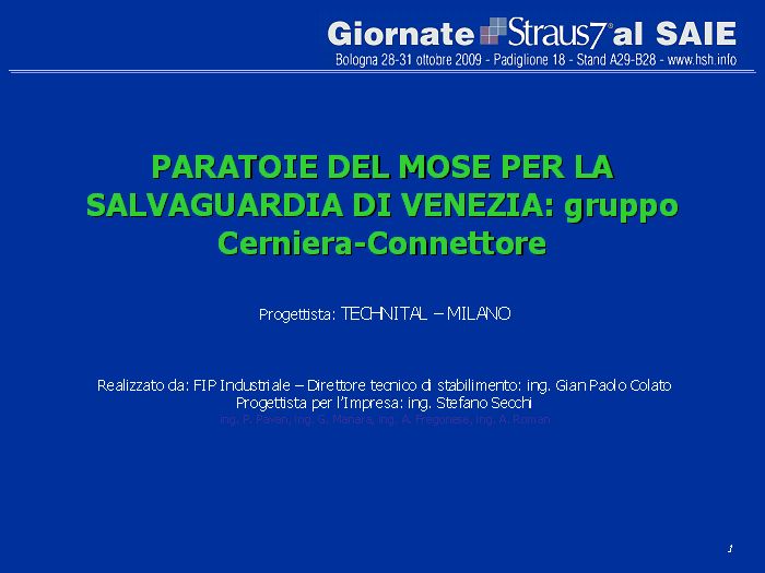 Seguono alcune slides tratte dalla relazione tecnica tenuta al SAIE 2009