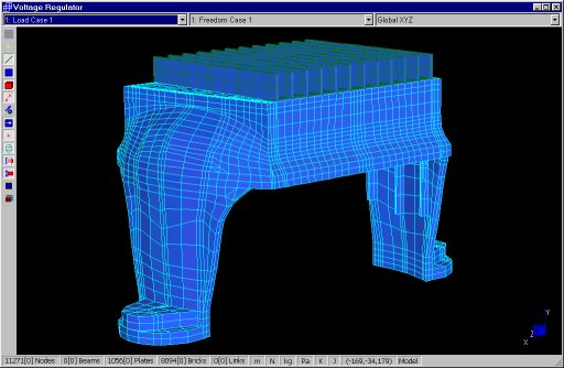 La superficie è modellata con elementi plate e shell. Sono stati utilizzati alcuni elementi brick per modellare localmente regioni a grande spessore all'interno della scatola.