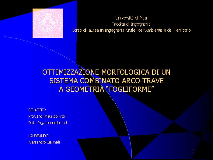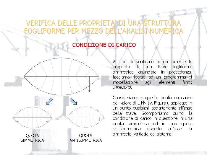 L’idea di affiancare in parallelo ad una trave due archi, che la assistano nello svolgimento della propria funzione strutturale, si riscontra già in ponti ferroviari tedeschi risalenti alla metà del XIX Secolo. Tali archi erano all’epoca collegati da elementi snelli che andavano a completare una struttura di tipo reticolare in cui fosse possibile con relativa facilità determinare le caratteristiche della sollecitazione. Lo sviluppo della tecnologia e la disponibilita' di software per il calcolo strutturale ci permettono oggi di studiare sistemi combinati arco-trave con una geometria più complessa, ovvero di analizzare ampi ventagli di possibilità in tempi brevi. Sulla base di queste considerazioni il Prof. Ing. Maurizio Froli ha ideato particolari sistemi combinati composti da due archi e una trave che ha denominato “travi fogliformi”. Lo studio ha come obiettivi la verifica delle proprietà di una trave fogliforme per mezzo del software di calcolo Straus7 e, sempre con l'ausilio di quest'ultimo, la ricerca dell'andamento del peso totale della struttura al variare dei parametri geometrici che la definiscono. CONTINUA |
