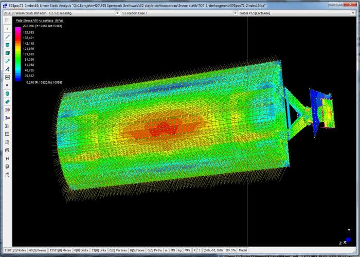 Tutte le aperture sono state calcolate utilizzando un modello di dettaglio, ad elementi finiti, in Straus7. Il calcolo comprende l’analisi tensionale, il buckling, le deformazioni e la fatica.