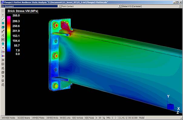 precarico sui bulloni (rosso a sinistra), carico sulla trave (rosso e arancione