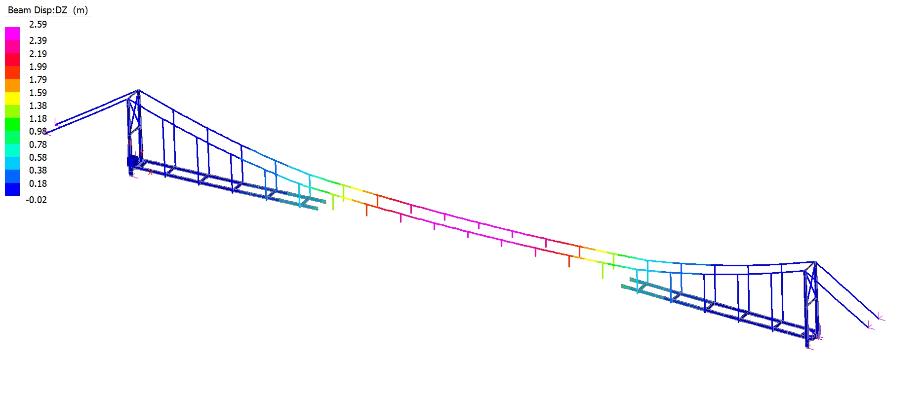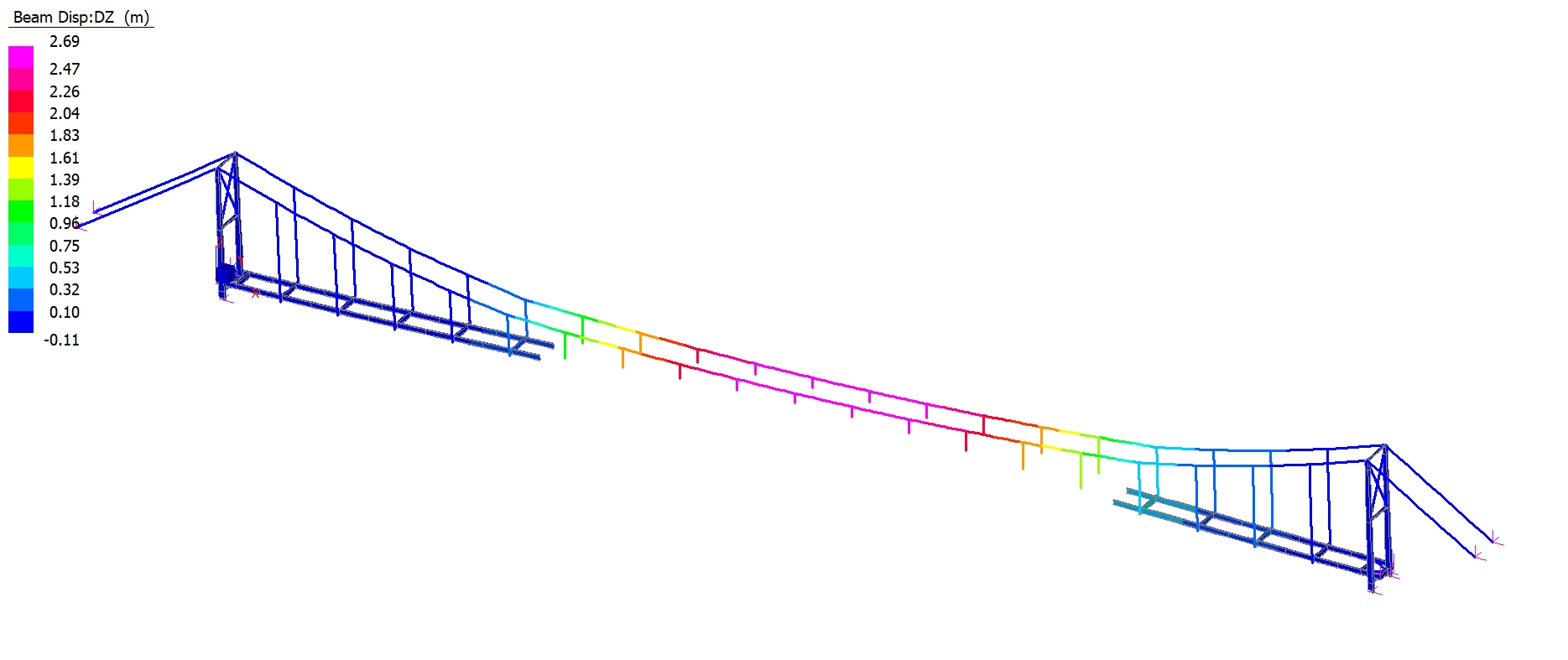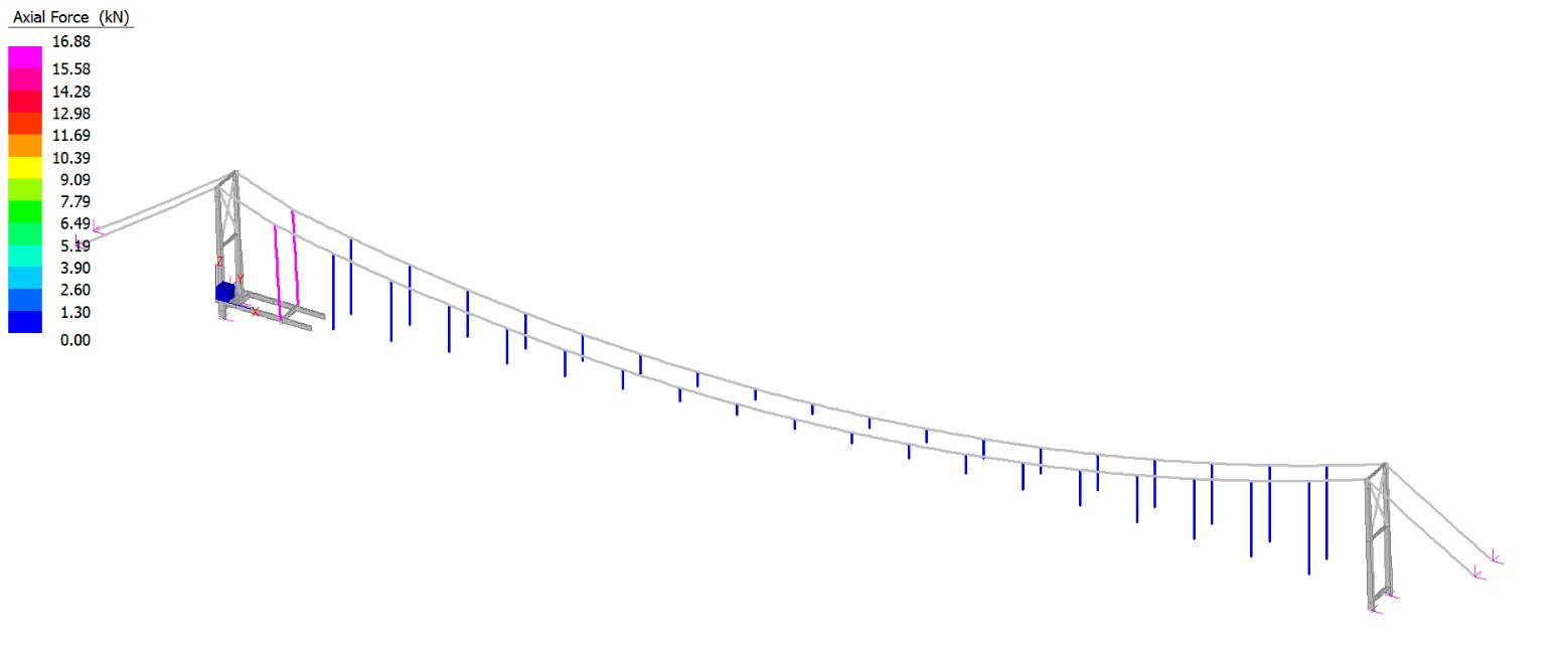 Sorge sospeso a 100 metri di altezza, sopra lo spettacolare orrido creato dal torrente Mallero in Valmalenco (SO), il ponte ciclopedonale che collega le localita' di Mossini e Ponchiera. L'opera commissionata dal Comune di Sondrio e' stata progettata da MAFFEIS ENGINEERING S.p.A., capogruppo del raggruppamento che comprende Studio Moncecchi Associati, Arch. Francesco Venzi e Se.i.co. e realizzata da C.M.M. F.lli Rizzi s.r.l. Durante tutto l'iter progettuale, che il raggruppamento ha seguito dal preliminare all'esecutivo, si sono indagate in modo approfondito tutte le specificita' di una struttura di questo tipo, soggetta alle azioni dinamiche indotte dal vento oltre che alla problematica del comfort della folla in attraversamento. L'architettura strutturale del ponte e' di tipo tensostrutturale, ovvero una passerella sospesa con funi superiori portanti principali e funi stabilizzanti inferiori secondarie. L'opera ha una luce di attraversamento di circa 146 mt ed una larghezza calpestabile di 2.90 mt. La struttura portante e' costituita da un impalcato in struttura metallica (costituito da due travi principali a doppio T ad anima inclinata) e soletta in calcestruzzo. L'impalcato e' connesso alle funi portanti mediante una pendinatura avente un passo di circa 7.20 mt. Al fine di ottenere una struttura stabile anche per le azioni laterali dovute al vento, sono state messe delle funi stabilizzanti disposte secondo una configurazione spaziale, inizialmente in equilibrio sotto le azioni di tensione iniziale dovute ai carichi permanenti. Il sistema di sospensione e' realizzato con funi costituite da fili di acciaio ad alta resistenza zincati a caldo. Sia le funi portanti (agganciate ai piloni alti 16 mt) sia i cavi stabilizzanti sono funi chiuse FLC, mentre le pendinature sono realizzate con funi spiroidali; i cavi portanti principali hanno un diametro di 80-84 mm, gli stabilizzanti 56 mm e le pendinature tra i 16 e i 20 mm. Le funi stabilizzanti sono caratterizzate da curvature nei piani verticali e orizzontali in modo da ottenere una risposta efficace contro le azioni dei carichi gravitazionali e le azioni di sollevamento e trascinamento indotte dal vento. E’ stato realizzato un modello FEM di calcolo Straus7 comprensivo di antenne, impalcato e cavi, non solo per il calcolo degli stati di esercizio, ma anche per la simulazione, tramite stage analysis di tutte le fasi di montaggio del ponte, permettendone la supervisione e il monitoraggio. Il modello e' stato realizzato mediante un approccio parametrico, mediante interfaccia Rhinoceros-Grasshopper resa possibile per mezzo di un codice personalizzato realizzato con l'opzione API (Application Program Interface) di Straus7. Testo, foto e immagine del modello di calcolo per gentile concessione di Maffeis Engineering Spa. |