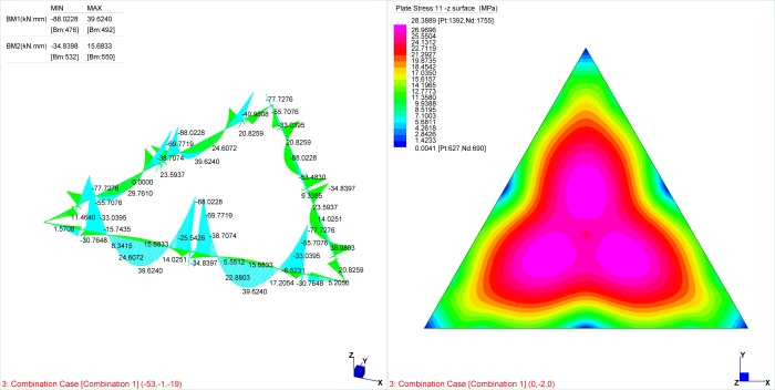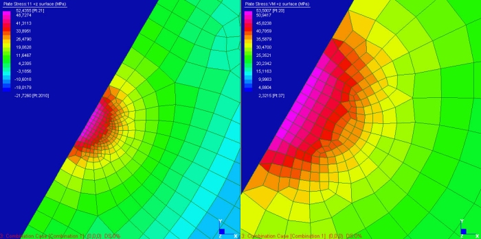 Inoltre è stato indagato lo stato tensionale all’interno dei singoli pannelli di vetro mediante la messa a punto di un modello numerico per la schematizzazione del telaio in alluminio di supporto al pannello e del pannello stesso; quest’ultimo è stato modellato mediante elementi plate aventi spessore equivalente, in termini di comportamento flessionale, a quello della stratificazione di due lastre in vetro 10+6 mm con interposto strato di PVB.