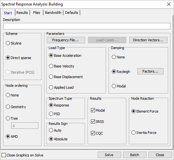 Il menu di controllo del solutore spettrale contiene numerose funzioni utili per lo svolgimento dell’analisi sismica modale, quali: