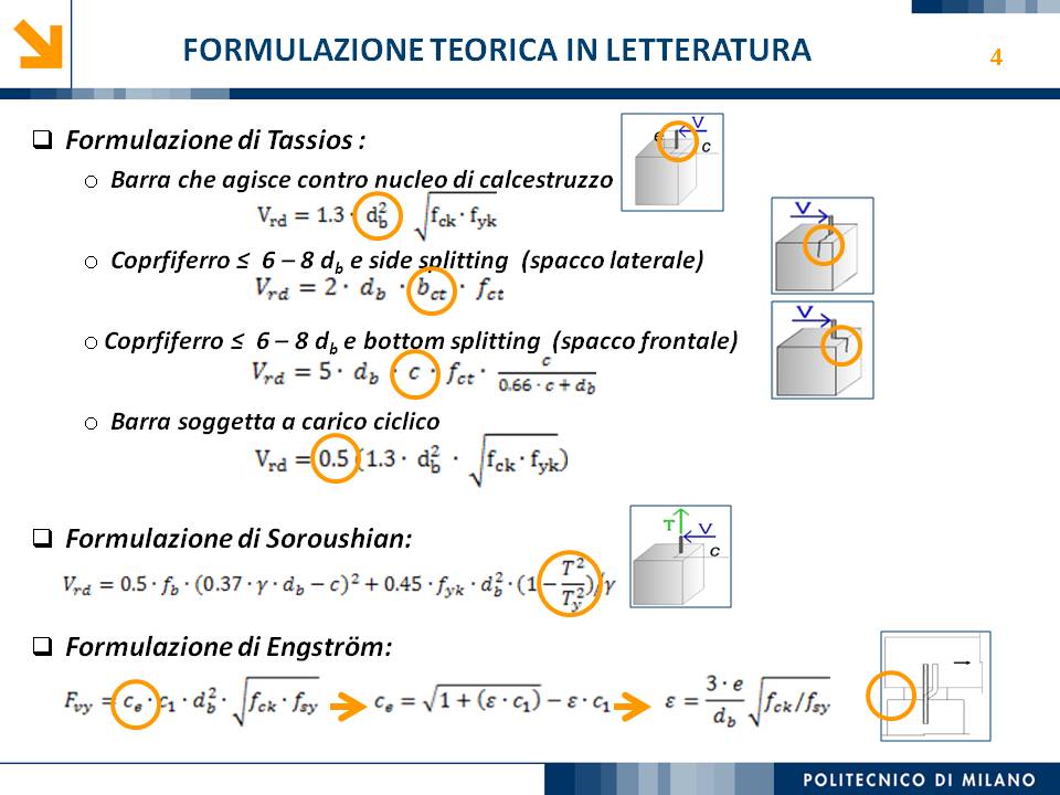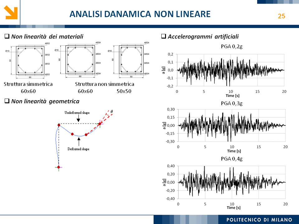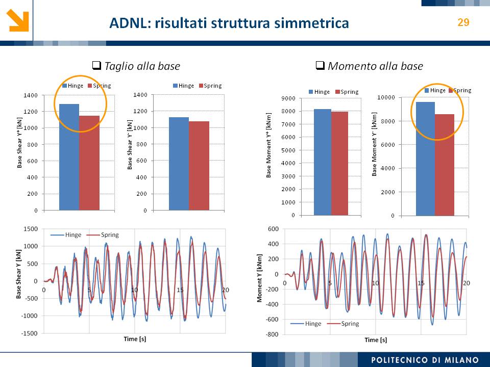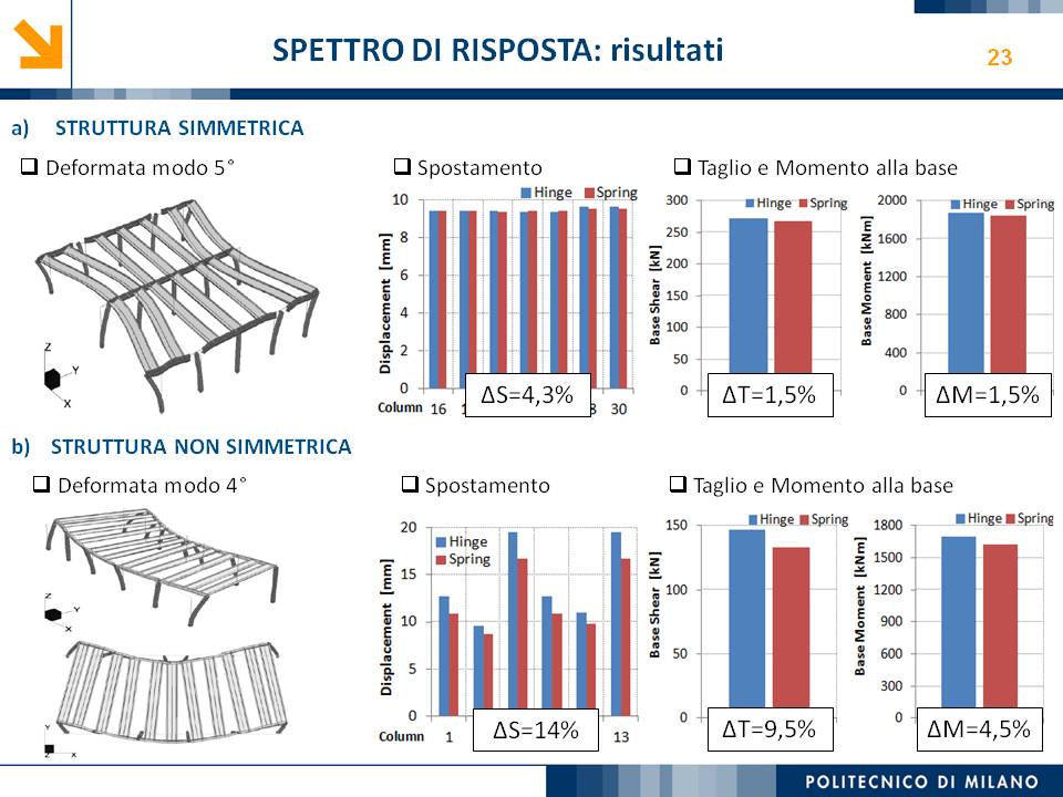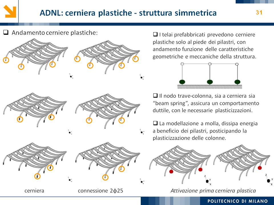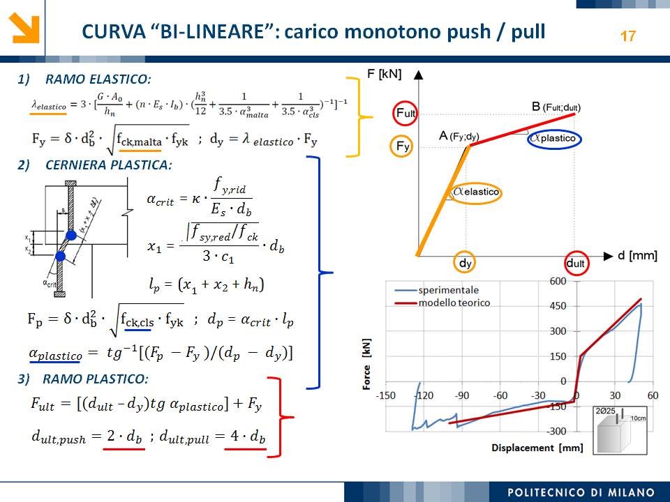 L’obiettivo dello studio presentato è qualificare e quantificare i parametri caratteristici del comportamento sismico, in termini di spostamento, resistenza, rigidezza e duttilità, delle connessioni a spinotto trave – colonna correntemente impiegate nelle strutture industriali prefabbricate. Queste connessioni sono tipicamente costituite da barre di acciaio ancorate nel pilastro e passanti in appositi alloggiamenti della trave, successivamente annegati con malta, in modo da garantire un comportamento pressoché a cerniera nel piano verticale e un comportamento rigido nel piano orizzontale. Nella tesi è riportata un’analisi parametrica relativa alle formulazioni attualmente presenti in letteratura per la valutazione della resistenza di tali connessioni, al fine di sottolineare pregi e difetti di ognuna. Viene inoltre presentata la procedura necessaria a caratterizzare il comportamento del collegamento in termini di forza-spostamento, sia a snervamento sia a rottura, mediante curva “Bi-Lineare” e “Tri-Lineare”. Tali procedure sono verificate attraverso una campagna sperimentale, realizzata nell’ambito del progetto di ricerca Europeo SAFECAST, di cui si riportano i set up delle prove e i risultati ottenuti per storie di carico sia monotono sia ciclico; i test sono stati condotti fino allo spostamento ultimo, in modo da determinare, in maniera dettagliata, la curva forza-spostamento caratterizzante la connessione. La definizione “Bi-Lineare” e “Tri-lineare” del comportamento del collegamento spinottato è stata applicata nella modellazione ad elementi finiti di due strutture prefabbricate monopiano ad uso industriale, simmetrica e non, realmente esistenti. Su tali strutture sono state condotte analisi dinamiche non lineari, Time History, al fine di evidenziare la differente risposta, da parte dell’edificio soggetto a sisma, tra l’innovativa modellazione della connessione spinottata con elementi “Beam Spring” e il classico vincolo a semplice cerniera, attualmente adottato nella comune pratica progettuale. Lo studio presentato cerca di colmare le lacune nella conoscenza del comportamento sismico delle connessioni spinottate trave-colonna, promuovendo lo sviluppo di strumenti numerici appropriati, attendibili e verificati sperimentalmente, da utilizzare nella progettazione di strutture prefabbricate in zone sismica sfruttando le proprietà delle stesse connessioni. Il software utilizzato per le modellazioni FEM e' il codice di calcolo Straus7. |