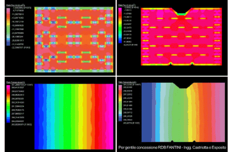 Dopo una accurata discretizzazione di ogni singolo elemento della parete in esame, STRAUS fornisce gli andamenti della temperatura e del flusso termico attraverso la parete stessa. Le immagini di seguito riportate si riferiscono a due elementi di laterizio forato, il primo destinato alla realizzazione di pareti interne (tavelloncino ordinario 8x25x25), il secondo destinato ai tamponamenti (TR9 30x25x25).