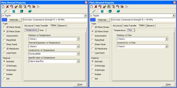Nella sezione "Table" della finestra di dialogo per la definizione dei materiali è possibile assegnare le tabelle in relazione alla variazione delle suddette grandezze con la temperatura od il tempo.
