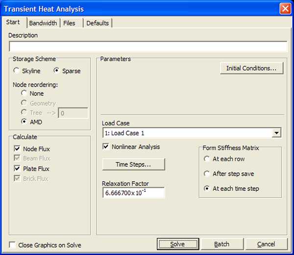 Figura 11 - Finestra di dialogo del solutore termico non lineare nel transitorio.