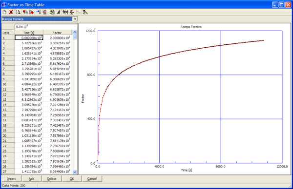 Figura 8 - Definizione della rampa termica per la temperatura di scambio termico convettivo.