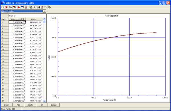 La seguente figura illustra, ad esempio, la tabella di variazione del calore specificio con la temperatura.