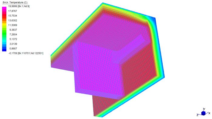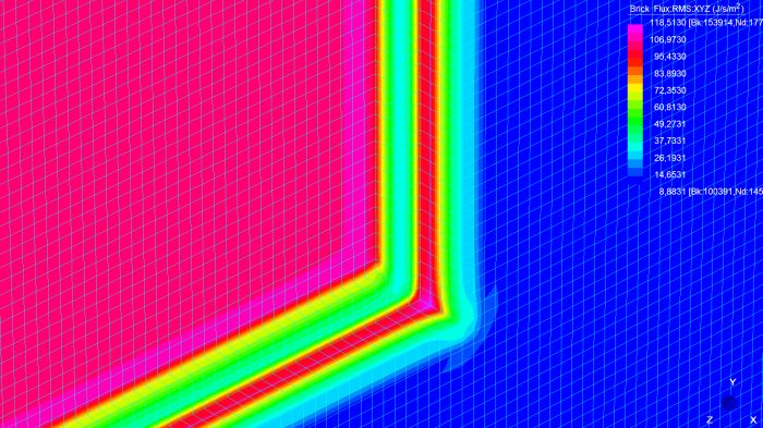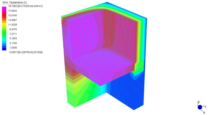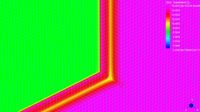 Una delle caratteristiche più importanti da tenere presente nella costruzione di un edificio è quella dell’isolamento termico. Ciò è necessario per fornire a chi vi abiterà il benessere termoigrometrico, ovvero una situazione di comfort del corpo umano, e per garantire una vita di esercizio corretta alle strutture. La situazione di comfort, studiata in relazione agli scambi di calore del corpo umano con il resto dell’ambiente, è determinata da diversi fattori tra cui: la temperatura dell’aria e quella delle superficie che delimitano l’ambiente. A tale scopo gli edifici sono dotati di impianti di riscaldamento per il regime invernale, e di impianti di condizionamento per quello estivo. Si definisce ponte quella parte dell’involucro edilizio dove il flusso termico si sviluppa in 2 o 3 dimensioni; ciò può essere dovuto alla geometria (angoli, etc..) o alle diverse caratteristiche dei materiali che formano l’elemento. In generale in una parete piana idealmente di lunghezza indefinita le superficie isoterme (che descrivono i vari strati di temperatura nella sezione del muro) si dispongono parallele l’una all’altra, e il flusso di calore q risulta essere monodimensionale, e in direzione perpendicolare alle isoterme. Nel caso del ponte termico ciò non avviene: la propagazione del calore va considerata in due o tre dimensioni e ciò porta ad una dispersione termica superiore rispetto al caso monodimensionale; inoltre in tali zone vi è un abbassamento della temperatura superficiale che potrebbe dare luogo a fenomeni di condensa. Il metodo di calcolo agli elementi finiti rappresenta una valida procedura per risolvere le equazioni differenziali governanti il problema, e per fornire risultati accurati. Sono stati studiati alcuni casi notevoli in 2 o 3 dimensioni, con modellazione rispettivamente a plate o brick, principalmente in regime stazionario (non dipendente dal tempo); si riportano nel seguito i grafici dell’andamento della temperatura e del flusso termico.