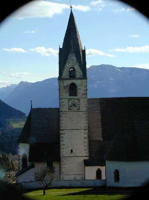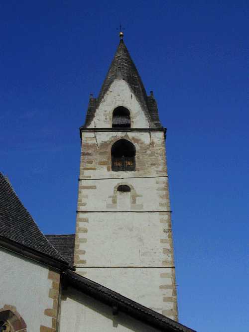 Il campanile è realizzato con muratura in pietra e si sviluppa per un’altezza complessiva di circa 36 m.