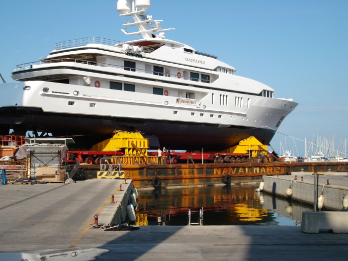 Dimensioni MegaYacht: lunghezza 62 m; larghezza ~ 10 m; altezza ~ 8 m