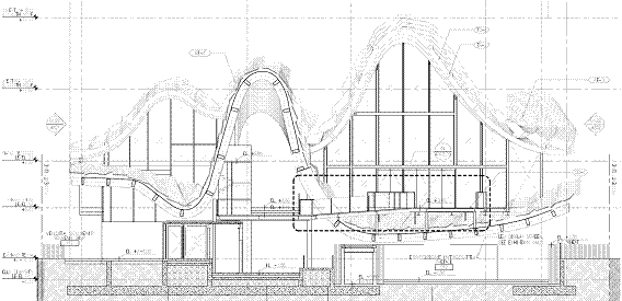 L’edificio ha una pianta rettangolare dimensioni 35.0x74.0m e copertura curvilinea che raggiunge quota massima 17.0m. Le seguenti figure illustrano la complessa geometria dell’edificio. |