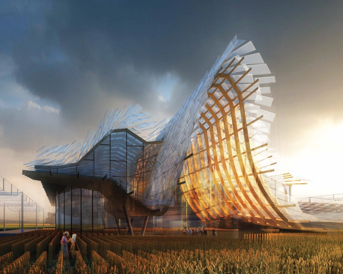 Tsinghua University in collaborazione con lo studio di progettazione studio Link-arc di NewYork ha progettato ‘il padiglione della Cina’ per l’EXPO Milano 2015 “Land of Hope”. La struttura del tetto ondulato è pensata come un elemento galleggiante al di sotto del quale prendono forma gli spazi per i programmi culturali ed espositivi .Il padiglione cinese è il secondo più grande padiglione dopo quello italiano ed è caratterizzato da una struttura complessa ma affascinante. |