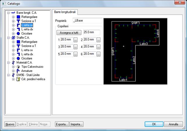 La gestione dei parametri di verifica e dei materiali è affidata al Catalogo delle Proprietà. I parametri definibili sono: