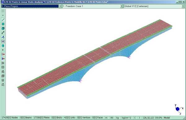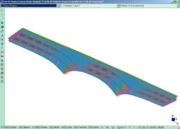 Il modello agli elementi finiti è stato elaborato nell’ambito delle indagini diagnostiche eseguite sul manufatto per conto dell’Amministrazione Provinciale di Pisa. Il modello contiene 17429 nodi e 17336 elementi plate.