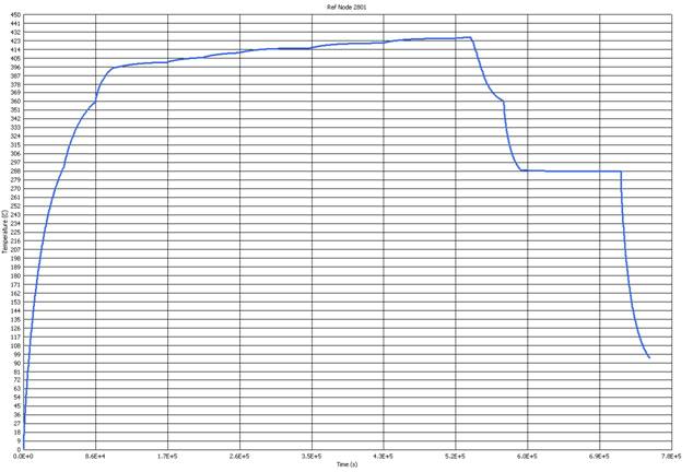 Figura 2 : distribuzione termica temporale su modello assialsimmetrico , a regime.