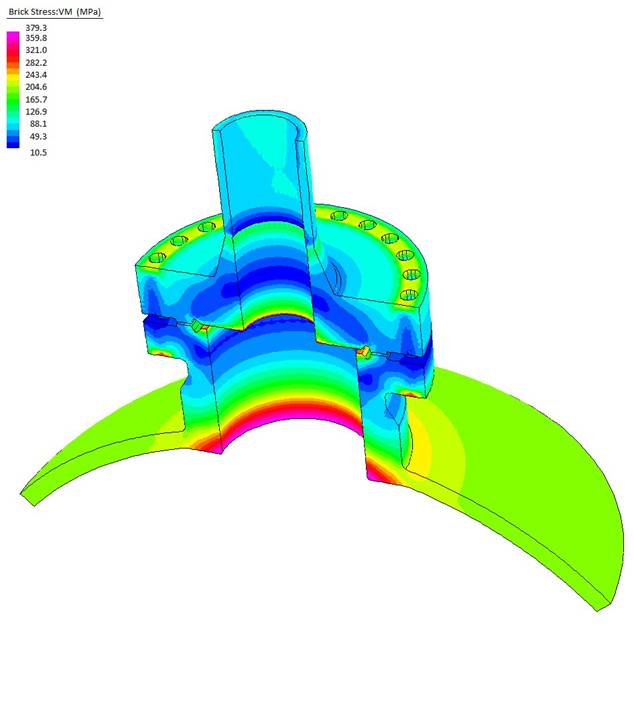 La verifica di un componente di reattore industriale sottoposto ad importante condizioni combinate di pressione e temperatura, è stato risolto mediante analisi numeriche mediante il software ad elementi finiti Straus7.