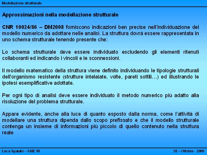 Seguono alcune slides tratte dalla relazione tecnica tenuta al SAIE 2009