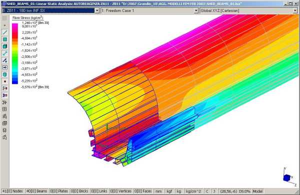 Modello in Straus7 di 21.366 elementi e 121.472 gradi di liberta'