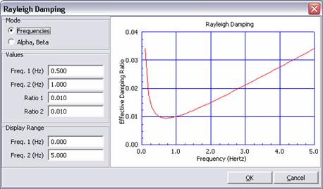 Si può inserire lo smorzamento alla Rayleigh, e, utilizzando il diagramma, vedere esattamente lo smorzamento che resta associato alle frequenze.