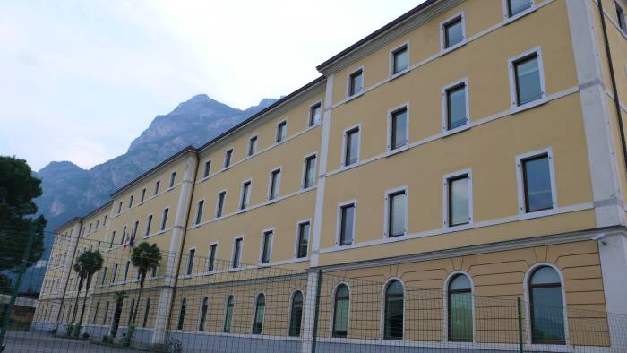 L’edificio è una ex caserma di costruzione austro – ungarica realizzata con muratura portante in pietra, solai ad avvolto su una parte del piano rialzato, in legno ed a volterrane per gli altri piani e tetto a struttura portante in legno con copertura in tegole marsigliesi.