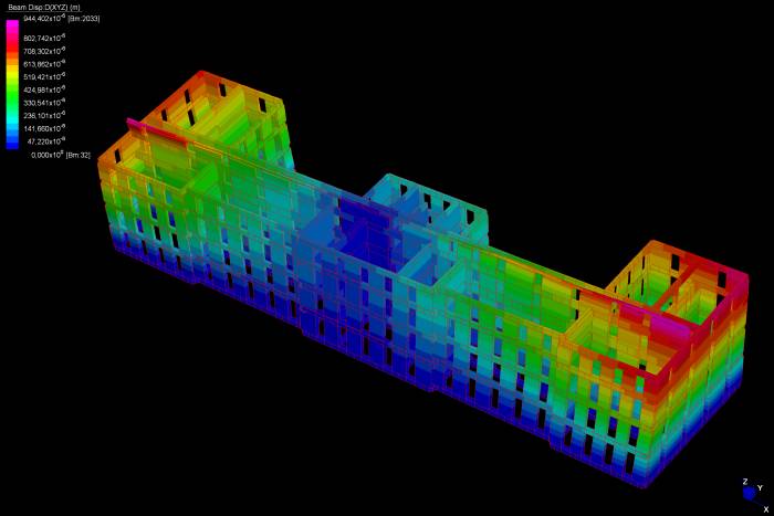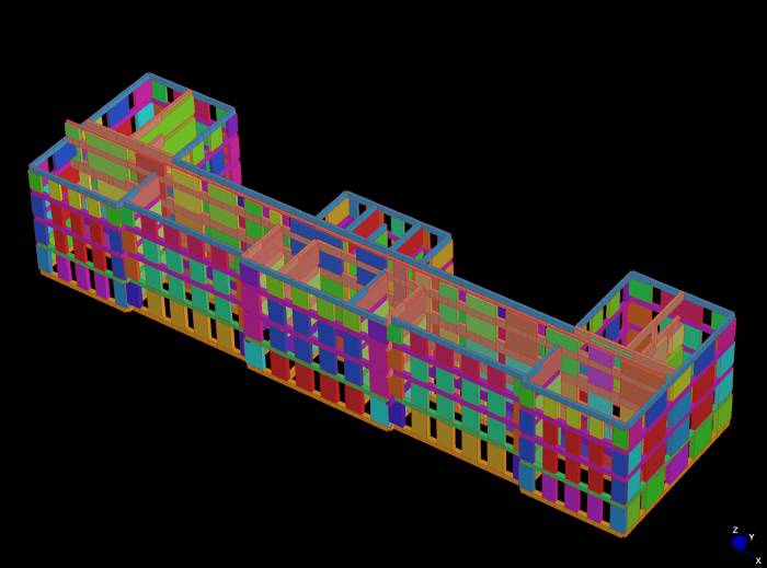 Il modello strutturale dell’edificio scolastico è stato effettuato mediante la modellazione con elementi beam dei maschi murari presenti