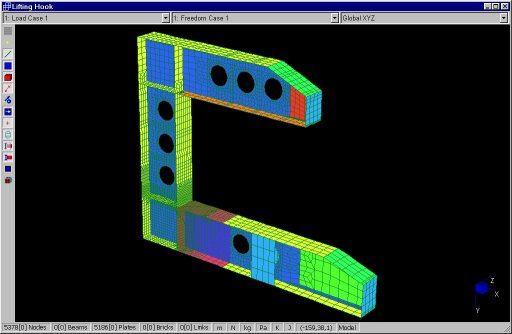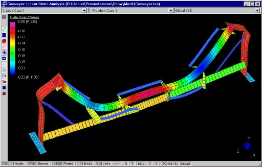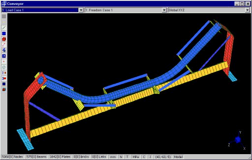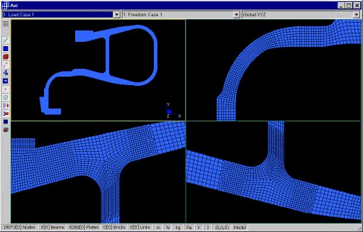 Coclea modellata con elementi shell per calcolare le tensioni nelle saldature ai fini del calcolo della resistenza a fatica. Queste strutture sono molto facili da modellare con Straus7, utilizzando gli strumenti sweep ed estrusione.