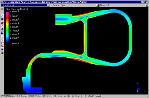 La mappa della tensione di Von Mises permette di individuare chiaramente le sezioni che necessitano di uno spessore maggiore.