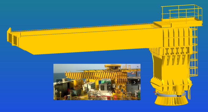 Gru a colonna per piattaforma petrolifera - Portata massima 15 tonn. a 10 m.