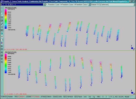 Fig. 8 – Deformata del terzo modo di vibrare: f3 = 3,12 Hz.