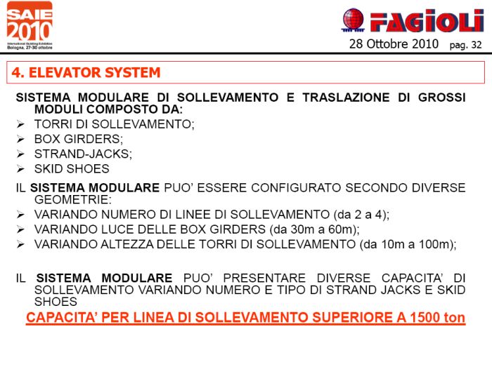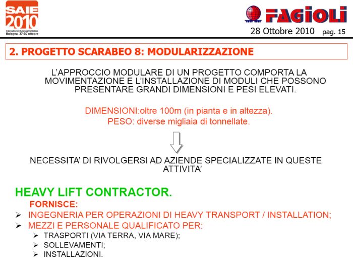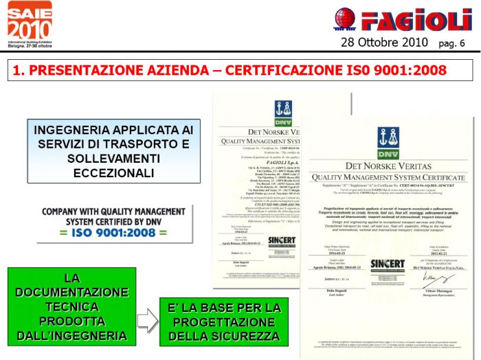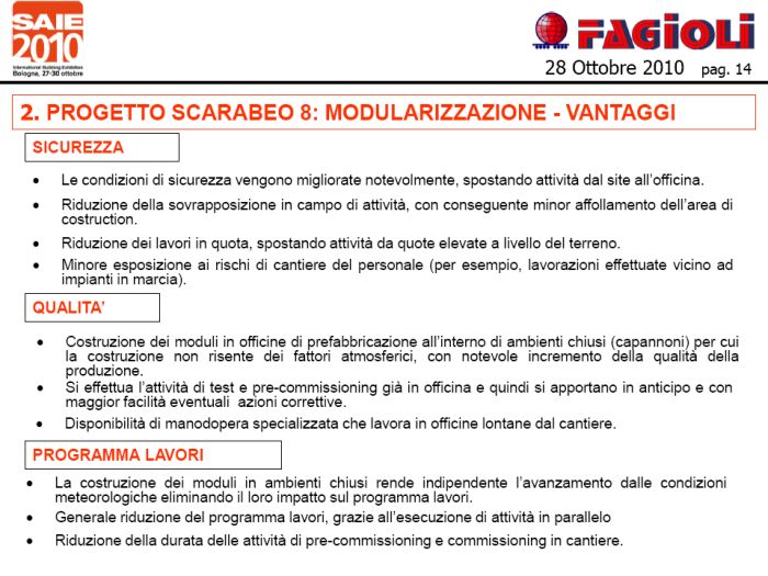Seguono alcune slides tratte dalla relazione tecnica tenuta al SAIE 2010