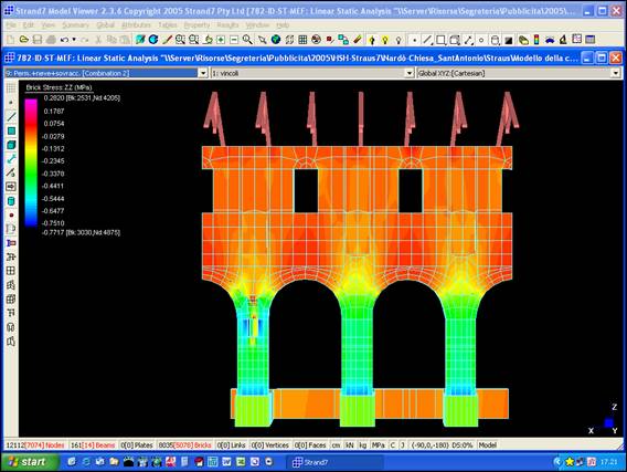 Fig. 5 – Analisi statica lineare: tensioni normali sZZ nelle murature.