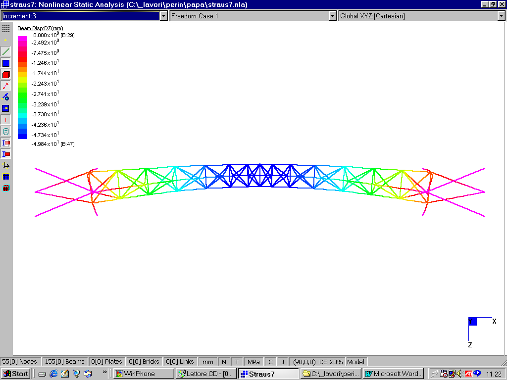 L’output grafico del programma ha consentito di visualizzare con grande efficacia le sollecitazioni e gli spostamenti max nelle varie configurazioni di carico: