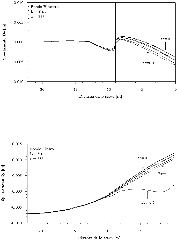 Per studiare anche l’effetto di questo diverso comportamento del terreno si sono considerate due condizioni di vincolo per il fondo scavo:
