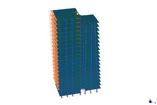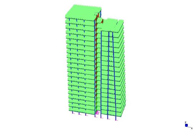 Gli elementi utilizzati sono del tipo isoparametrico a 8 nodi a comportamento di piastra, così come i setti degli ascensori, tutti con gli effettivi spessori, opportunamente infittiti in corrispondenza di discontinuità di carico e di vincolo.