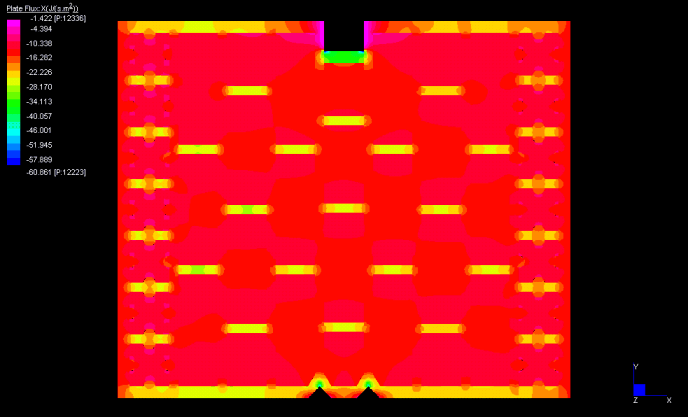 Dopo una accurata discretizzazione di ogni singolo elemento della parete in esame, STRAUS fornisce gli andamenti della temperatura e del flusso termico attraverso la parete stessa. Le immagini di seguito riportate si riferiscono a due elementi di laterizio forato, il primo destinato alla realizzazione di pareti interne (tavelloncino ordinario 8x25x25), il secondo destinato ai tamponamenti (TR9 30x25x25).
