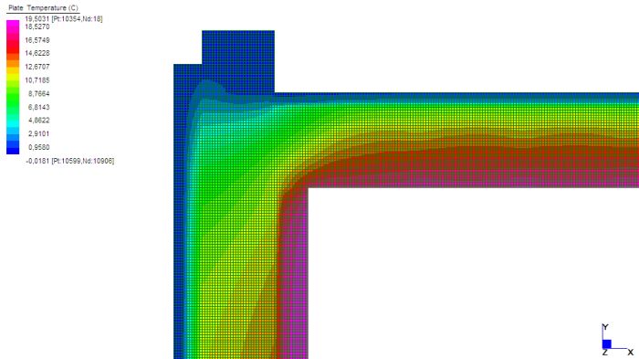 Una delle caratteristiche più importanti da tenere presente nella costruzione di un edificio è quella dell’isolamento termico. Ciò è necessario per fornire a chi vi abiterà il benessere termoigrometrico, ovvero una situazione di comfort del corpo umano, e per garantire una vita di esercizio corretta alle strutture. La situazione di comfort, studiata in relazione agli scambi di calore del corpo umano con il resto dell’ambiente, è determinata da diversi fattori tra cui: la temperatura dell’aria e quella delle superficie che delimitano l’ambiente. A tale scopo gli edifici sono dotati di impianti di riscaldamento per il regime invernale, e di impianti di condizionamento per quello estivo. Si definisce ponte quella parte dell’involucro edilizio dove il flusso termico si sviluppa in 2 o 3 dimensioni; ciò può essere dovuto alla geometria (angoli, etc..) o alle diverse caratteristiche dei materiali che formano l’elemento. In generale in una parete piana idealmente di lunghezza indefinita le superficie isoterme (che descrivono i vari strati di temperatura nella sezione del muro) si dispongono parallele l’una all’altra, e il flusso di calore q risulta essere monodimensionale, e in direzione perpendicolare alle isoterme. Nel caso del ponte termico ciò non avviene: la propagazione del calore va considerata in due o tre dimensioni e ciò porta ad una dispersione termica superiore rispetto al caso monodimensionale; inoltre in tali zone vi è un abbassamento della temperatura superficiale che potrebbe dare luogo a fenomeni di condensa. Il metodo di calcolo agli elementi finiti rappresenta una valida procedura per risolvere le equazioni differenziali governanti il problema, e per fornire risultati accurati. Sono stati studiati alcuni casi notevoli in 2 o 3 dimensioni, con modellazione rispettivamente a plate o brick, principalmente in regime stazionario (non dipendente dal tempo); si riportano nel seguito i grafici dell’andamento della temperatura e del flusso termico.