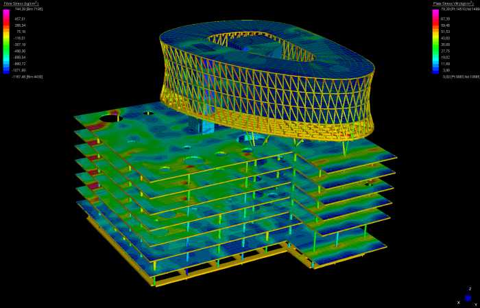 Modello corrispondente in Straus7: la presenza di grossi fori nei solai, in diverse