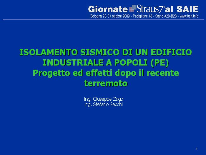 Seguono alcune slides tratte dalla relazione tecnica tenuta al SAIE 2009